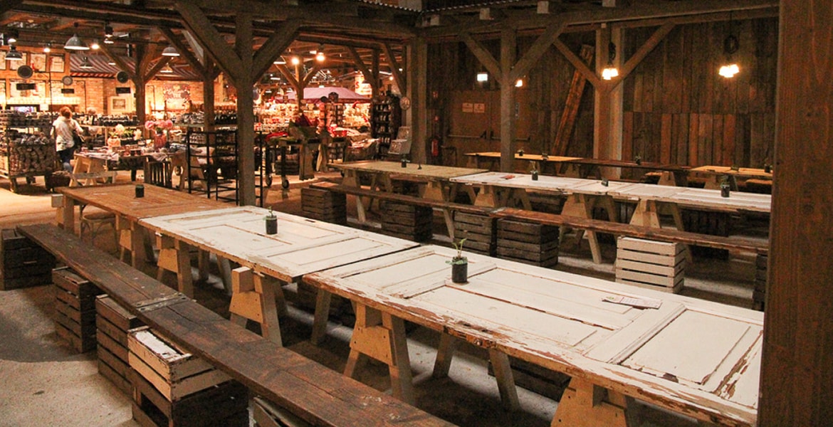 Der Eingang in die große Scheune lässt schon Stauen. Viele Stände mit schönen verscheiden „Erdbeer“ Sachen, von Erdbeer – Figuren, Erdbeer – Marmelade bis Erdbeer – Wein. An fast allen Ständen kann man probieren. Was aber mit am schönsten ist und wahrscheinlich auch diese Atmosphäre bringt ist das man Überall Live zuschauen kann. Wie werden die Bonbons gemacht oder die Marmelade. Es gibt so viel zu schauen, innen Ist auch ein Großes Restaurant wo nicht nach Essen abgerechnet wird sondern nach dem wie viel du auf dem Teller hast (in Kilogramm ).