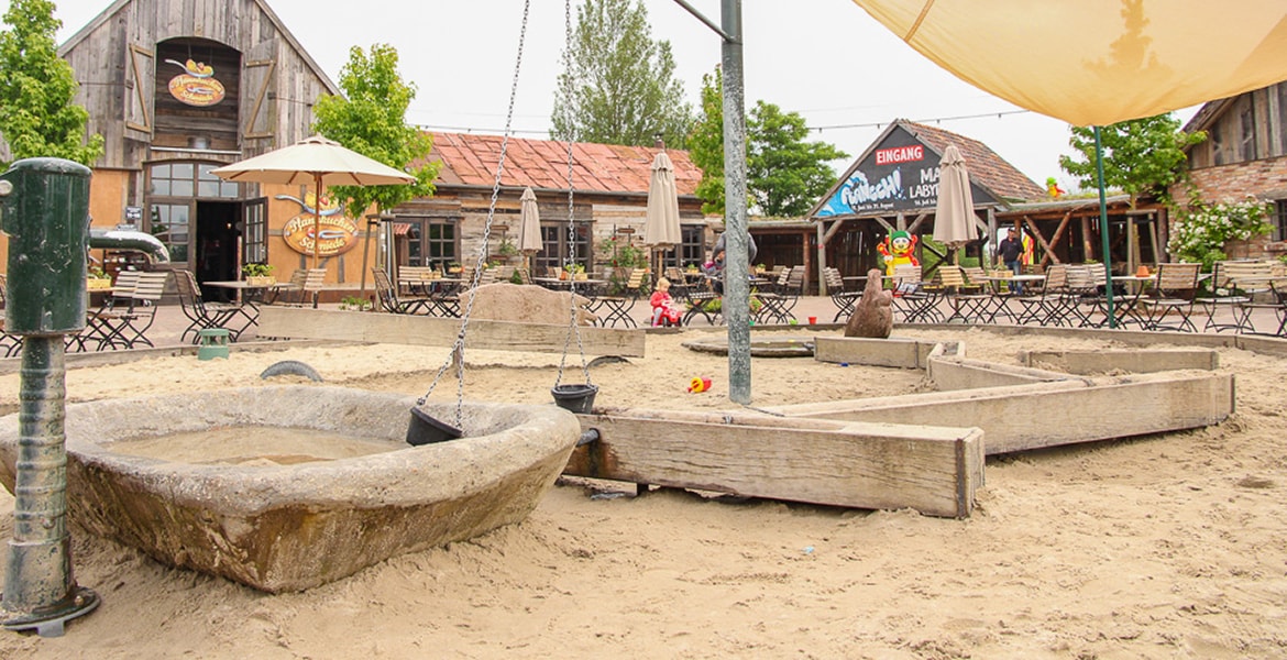 In der großen Scheune befindet sich auch ein Indoor-Spielplatz. Diesen haben wir jedoch nur kurz genutzt, weil es draußen noch viel mehr zu sehen gab. Dort sind auch die Attraktionen wie die „Traktorbahn“, die „Wasserrutsche“, das „Labyrinth“ und jede Menge anderer Spielplätze. Und all das ist, bis auf die großen Attraktionen, kostenlos. Für die Eltern gibt es überall kleine Cafés und Restaurants. Wir haben uns wirklich entspannen können. Es ist ein Paradies für Eltern und Kinder.