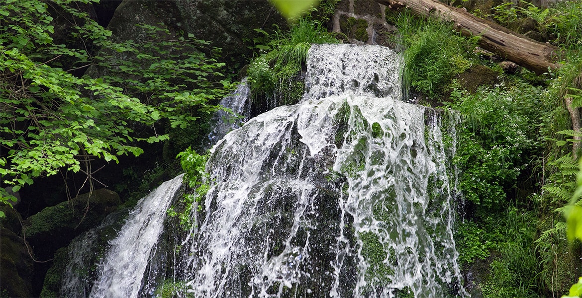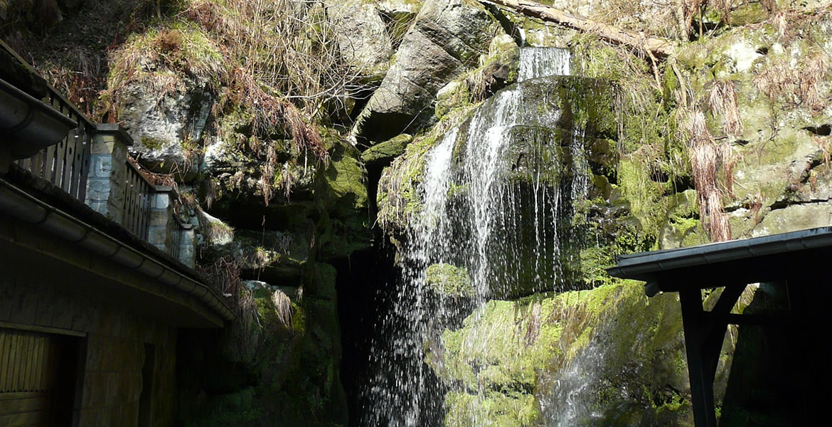 Wenn ihr ca. 1,5 km weiter nach Rathewalde lauft, dann kommt ihr zum „Amselfall“. Der Weg dahin wird etwas steiler und holpriger, aber den Kinderwagen kann man dennoch problemlos mitführen. Hier am Amselgrund fällt der Grünbach über das Amselloch in zehn Meter Tiefe. Das