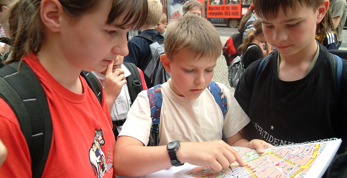 Dafür hat sie diese Orte mit geheimen Zeichen markiert. Zum Glück ergibt sich daraus ein Hinweis auf die Bande. Um ihn zu entschlüsseln, müssen die Detektive an 9 Kästner-Orten, 18 knifflige Rätsel lösen und dabei auch noch auf die Autos achten. Denn darin könnten mordlustige Mitglieder der Bande sitzen. Höhepunkt ist die Verhaftung der echten(!) Täter, die sich natürlich wehren.