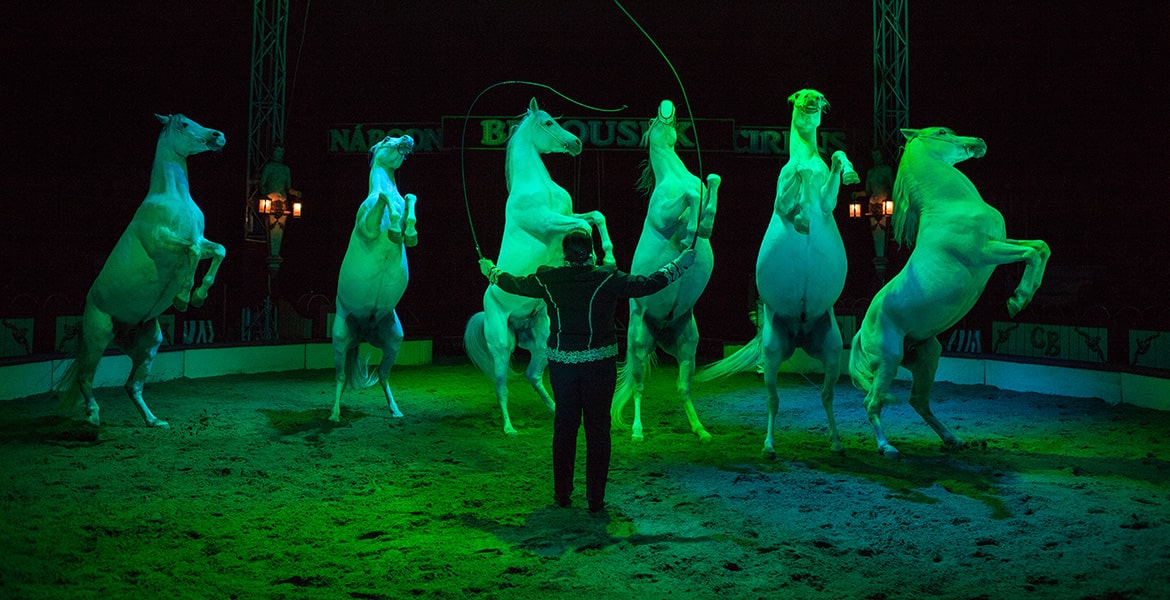 Tiere gehören zum Circus. Dieser Tradition schließen wir uns gern an und zeigen in dieser Spielzeit die größte Vielfalt an Tieren, die je im Dresdner Weihnachts-Circus zu Gast war. Elefantös wird es bei Ronald Spindler, wenn er mit seinen 3 afrikanischen Elefantendamen nicht nur die Manege zum Beben bringt. Als Spross der bekannten Circus-Familie „Berolina“ wird er mit Temba, Lilly & Suna unser Publikum mit Sicherheit zu begeistern wissen. Joulia Tchakanova präsentiert eine Dressurkombination von Lamas und afghanischen Windhunden, welche sich so in der Natur wahrscheinlich nicht begegnen würden. Spielerisch, liebevoll und unglaublich ausdrucksvoll führen die Tiere ihr Zusammenspiel in der Manege aus. Aus der tschechischen Republik kommt die Familie Berousek, welche mit drei unterschiedlichen Darbietungen unsere Gäste beeindrucken wird. Mit einer der besten Pferdedressuren in Europa wird Jiri und Renata Berousek gleich mit zwölf Tieren ihre preisgekrönte Dressur unter der Kuppel des Grand Chapiteau präsentieren. Mit seiner zweiten Darbietung von Jiri Berousek wird es exotisch im Manegen Ring. Zebras, Kamele, Dromedare und Rinder zeigen ihr Können in einer bunten Mischung und klassischer Eleganz. Den dritten Part wird dann Renata Berousek übernehmen und mit ihren gecheckten Eseln beweisen, dass dieses definitiv keine dummen Tiere sind.