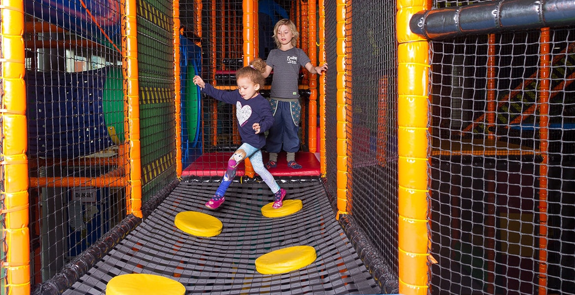 Attraktionen sind ein großes Klettergerüst mit Labyrinth sowie Wellen- und Raketenrutsche, eine 3-Feld-Trampolinanlage, ein Fußballfeld, zwei Kinderkegelbahnen, ein Spiderturm, Wii-Konsolen, Kletterbäume, Kickertische und ein separater Kleinkindbereich für Kinder von 1 – 3 Jahre.