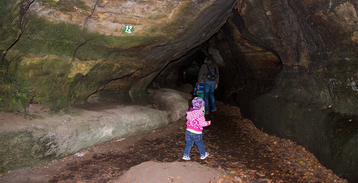 Die Felsen des Labyrinths sind zwar nur wenige Meter hoch, aber dennoch erwartet euch durch ihre starke Zerklüftung eine richtige Abenteuertour. Durch die engen Felsgassen, die dunklen Tunnel und kleinen Höhlen wird der markierte Pfad für Kinder zu einer richtig aufregenden